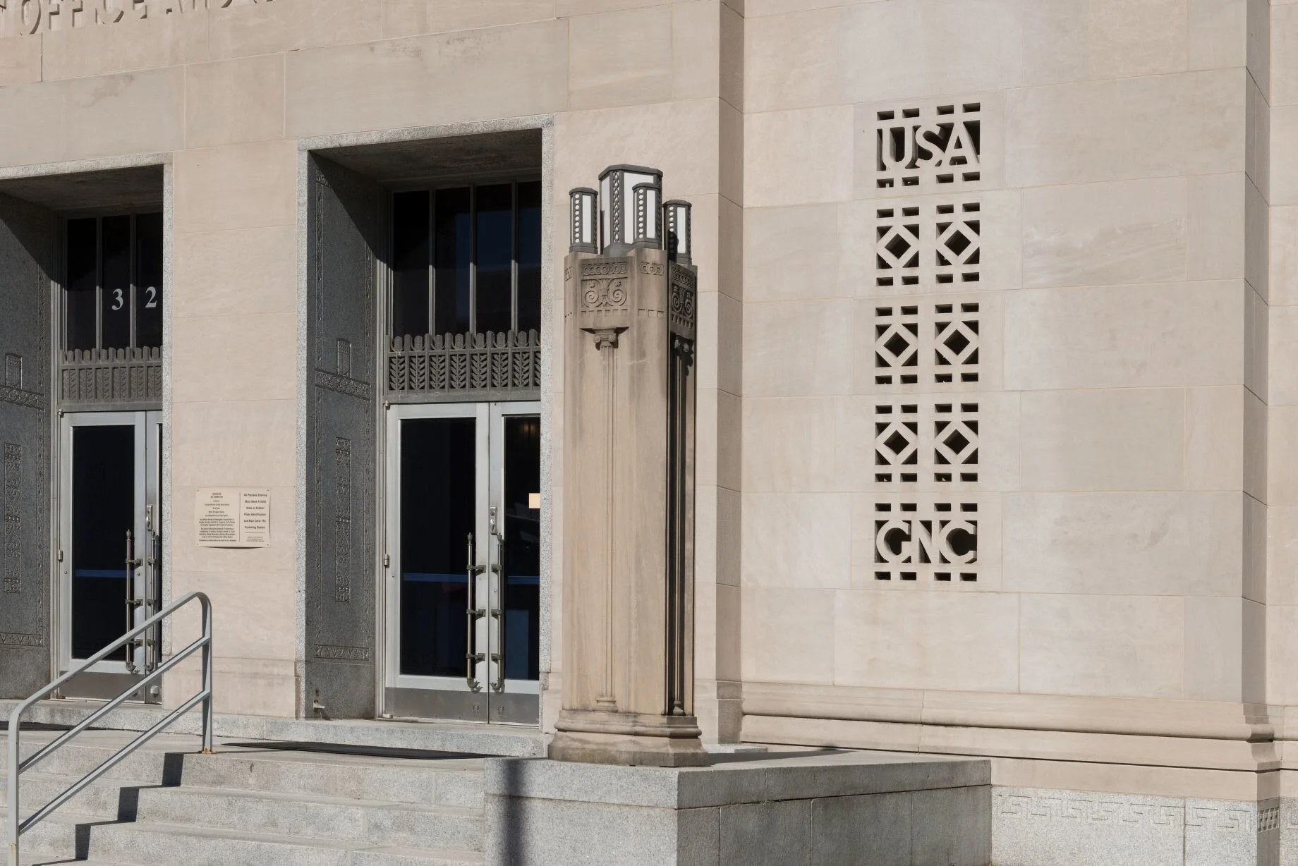 Performed as a Design-Build project with Hammer Construction for the GSA in Region 4, this beautiful, National Register-eligible federal building was a victim of Hurricane Florence, and the remediation work was aimed at fortifying select low-slope roof areas and exterior masonry walls, specifically two judges’ chambers suffered water entry during high winds. Historic plaster and wood work were damaged.